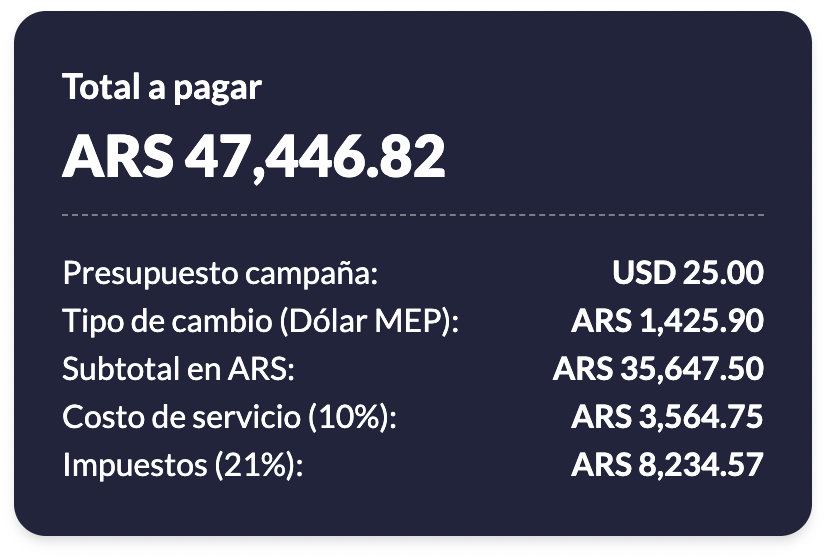 5. Finalmente, realiza el pago en PESOS o USD según prefieras