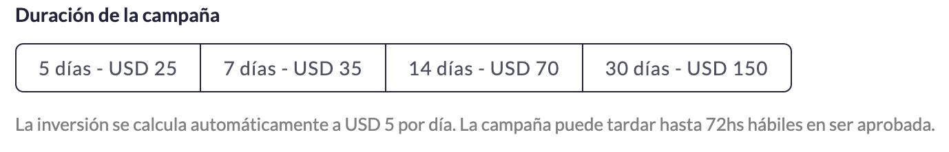 2. Selecciona la duración y presupuesto de la campaña