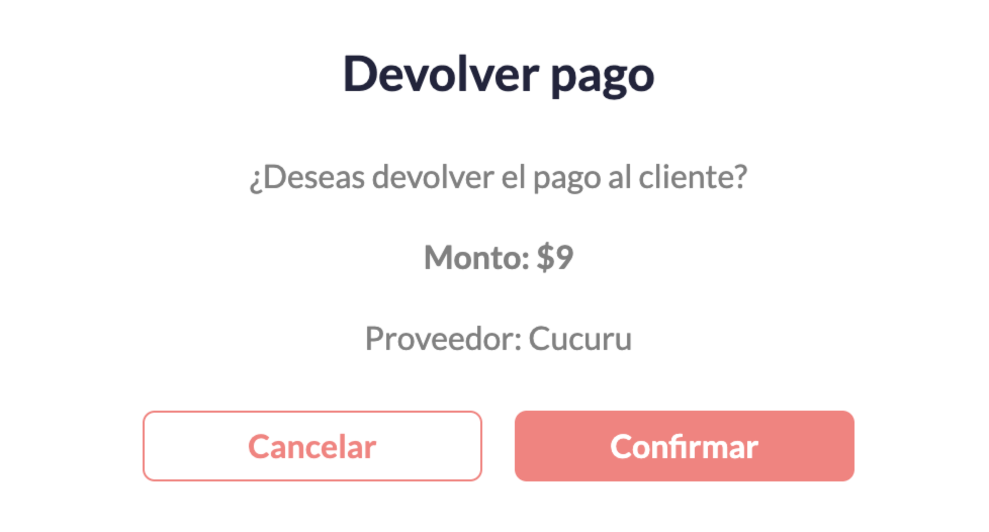 - El pago se devuelve automáticamente al cliente