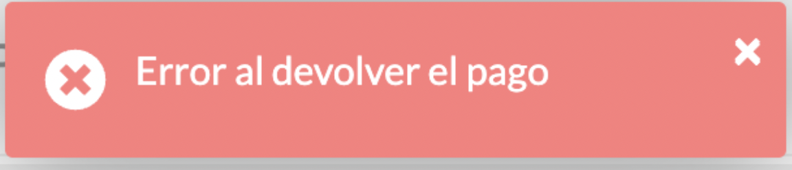 Si te encontras con el siguiente error de "Error al devolver el pago", espera unos minutos e intentá nuevamente. Si sigue fallando, contactanos y lo revisamos.
