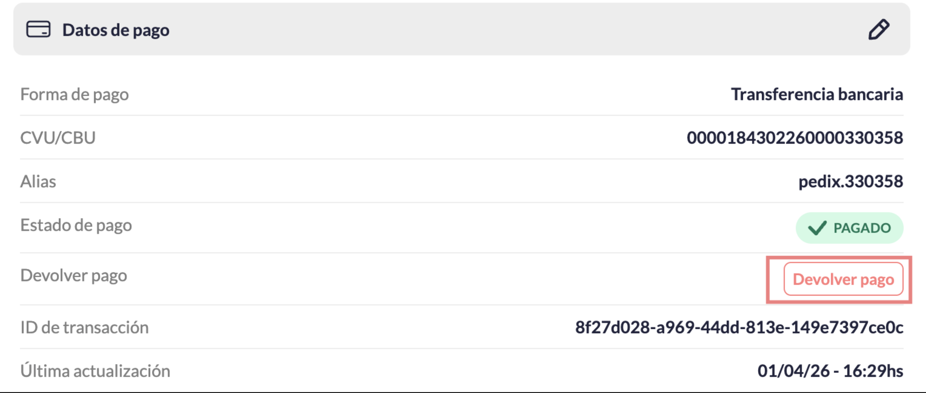 - Hacé clic en el botón “Devolver pago”