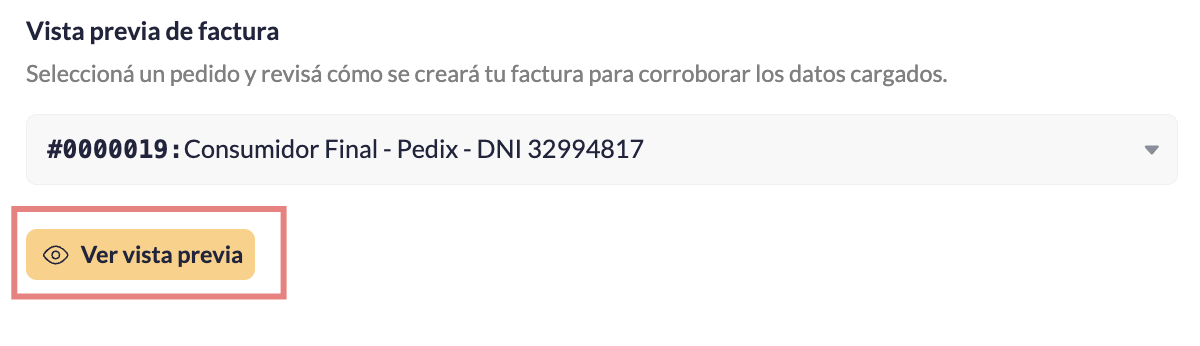 5. En cualquier modo de facturación que elijas, siempre podrás visualizar la vista previa para verificar como se verá la factura. Te recomendamos chequear siempre este paso para evitar errores de facturación.