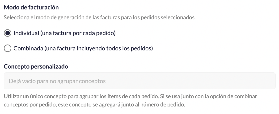 - La opción de facturación combinada no estará disponible si los pedidos tienen datos fiscales diferentes.