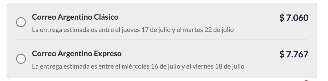 ¿Cómo ve el cliente la opción de Correo Argentino al hacer una compra?