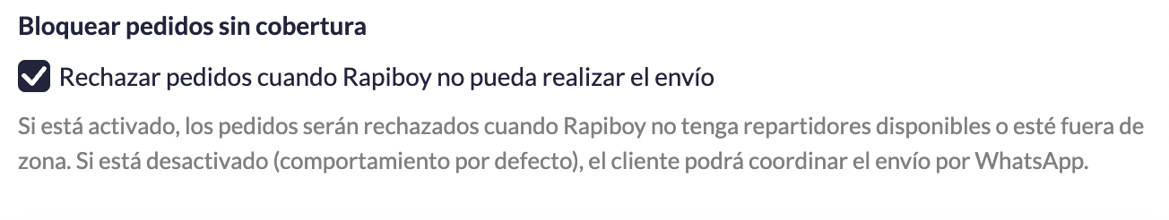 2. Si no hay cadetes disponibles, se bloqueará el pedido, o se tomará como envío a coordinar por WhatsApp, según como lo hayas configurado previamente.