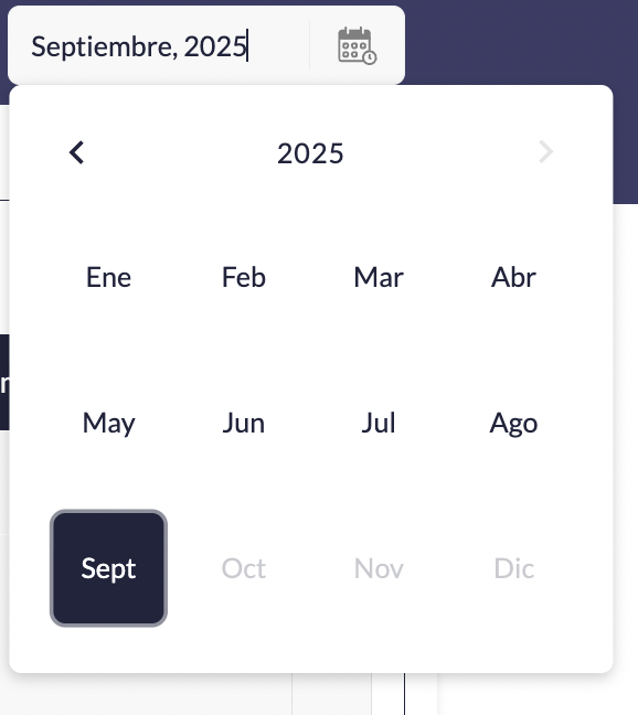 - Pestaña Comprobantes emitidos: muestra todas las facturas y notas de crédito generadas en el período seleccionado. Incluye filtros de búsqueda y acciones de descarga.