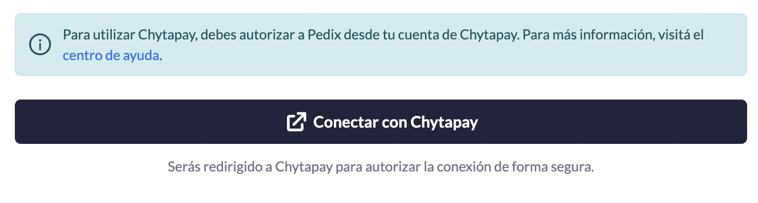 - Serás redirigido a ChytaPay para autorizar la conexión