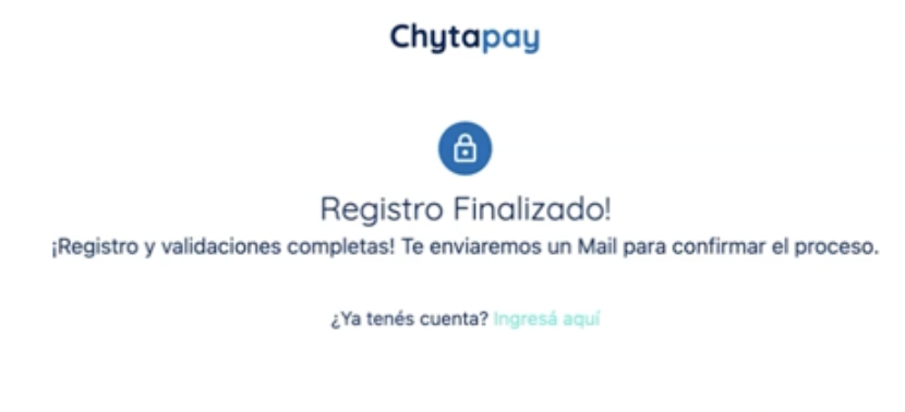 Cuando la verificación finalice, ChytaPay te notificará por email que la cuenta fue aprobada y activada.