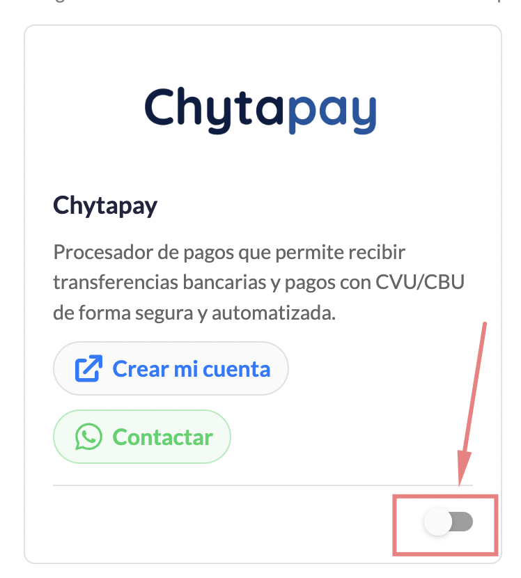 Además de integrar ChytaPay, debés habilitarlo como método de pago visible para los clientes.