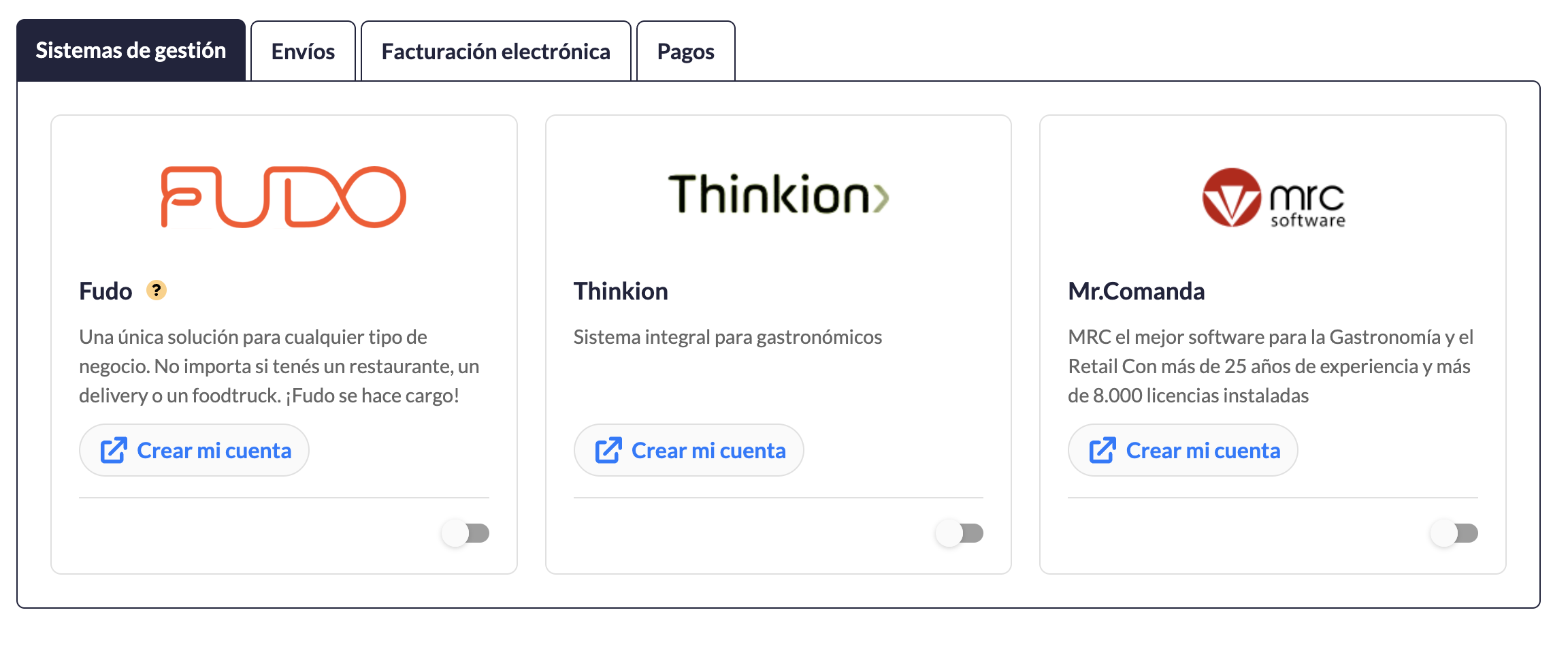 La funcionalidad de integraciones te permite conectar tu tienda Pedix con sistemas de gestión externos como Fudo, Thinkion o MRC, para automatizar la recepción de pedidos en ambos sistemas.