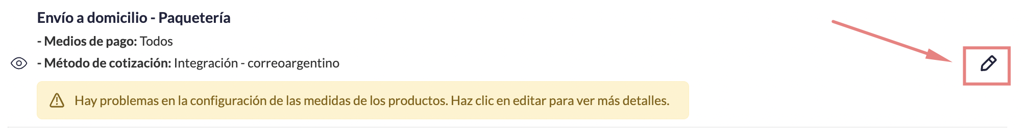 Ejemplo: Podés definir una “Caja chica” de 20x20x20 cm y hasta 400g, o un “Sobre mediano” de 30x25x5 cm.