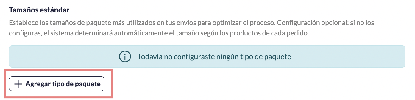 2. Haz clic en el botón “Agregar tipo de paquete”.